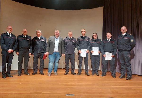 Viele Worte des Dankes waren zu hören. Aber auch Ehrungen und Beförderungen wurden ausgesprochen. So wurde Stefan Schneider zum Oberfeuerwehrmann befördert, Marie Schmitt zur Löschmeisterin. Der 2. stellvertretende Löschbezirksführer Simon Groß trägt ab jetzt den Dienstgrad eines Brandmeisters. Für 35 Jahre Mitgliedschaft in der Feuerwehr wurde Andreas Bohlen mit dem saarländischen Feuerwehrehrenzeichen in Silber geehrt. Werner Schirra wurde durch den Feuerwehrverband für 50 Jahre in der Feuerwehr geehrt, Otmar Groß für 60 jährige Mitgliedschaft.