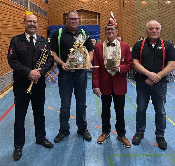 Zu seiner Geburtstagsfeier am 22.11.2025 konnten ihm der Fanfarenzug unter der Leitung von Bernd Erberich und Jörg Olliger, sowie Georg Fuchs als Vertreter der Löschbezirksführung mit einem Ständchen und einem Präsent gratulieren.