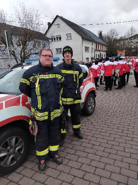 Doch nicht nur in den Hallen ist die Feuerwehr präsent. Auch beim Straßenkarneval unterstützen die Einsatzkräfte tatkräftig. An den von den Verwaltungsbehörden angeordneten Straßensperrungen sorgen sie gemeinsam mit weiteren Beteiligten für einen reibungslosen Ablauf der Umzüge. Gleichzeitig stellen sie jederzeit den Brandschutz in der gesamten Gemeinde sicher und gewährleisten, dass mögliche Einsatzstellen schnell erreicht werden können.