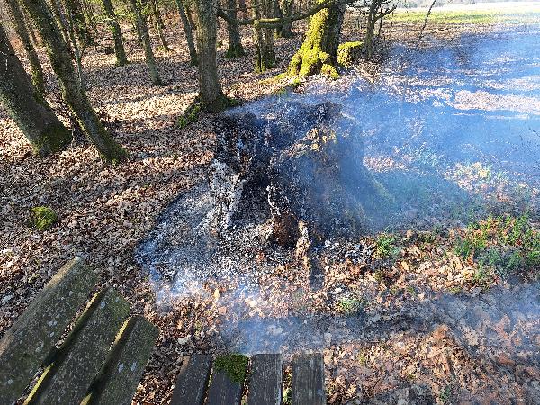 Vor Ort stellte sich heraus, dass neben einer Ruhebank ein Baumstumpf brannte.