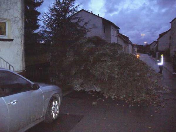 Anwohner alarmierten gegen 17.50 Uhr die Feuerwehr. Die Einsatzkräfte zersägten den Baum mit einer Motorsäge und räumten die Straße wieder frei.