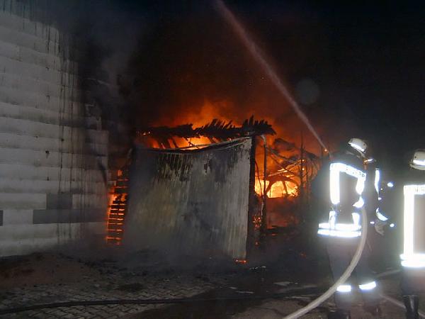 Als die um 0.53 Uhr alarmierte Feuerwehr aus dem Löschbezirk Wiesbach kurz nach der Alarmierung mit drei Fahrzeugen am Einsatzort eintraf, standen die in Holzbauweise gefertigte Garage sowie das darin abgestellte Fahrzeug bereits in Vollbrand. Die Flammen drohten, auf das Wohngebäude überzugreifen.