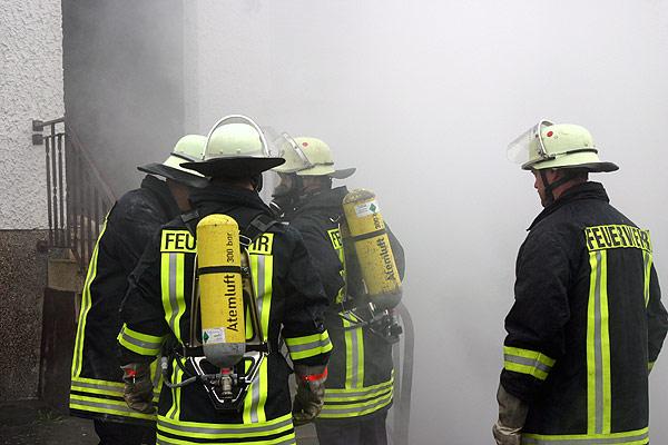 Neben der Brandbekämpfung war die Orientierung der Atemschutzgeräteträger in einem vollständig verrauchten Wohnhaus das Ziel dieser Übung. Und das haben die Feuerwehrmänner aus Hierscheid und Humes auch erreicht. Innerhalb kürzester Zeit waren alle eingeschlossenen Personen befreit und in Sicherheit gebracht worden. Auch eine Propangasflasche wurde aus dem Haus geborgen und vorsorglich gekühlt.