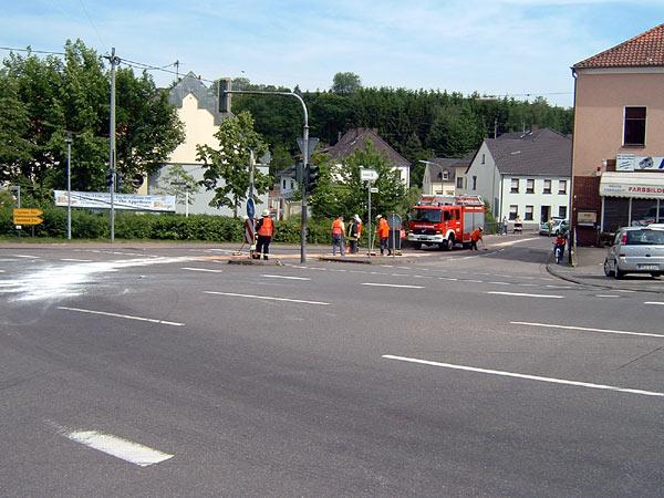 Die Einsatzkräfte reinigten die Fahrbahn mit Ölbindemittel, so dass die Polizei die Straße nach rund einer halben Stunde wieder freigeben konnte.
