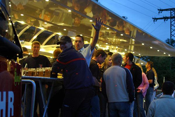 Passend zum sonnigen Wetter gab es eine Premiere auf dem Fest der Feuerwehr: Die Getränkefirma SchneiderTholey stellte das neue Bitburger-Sun-Eventmobil erstmals der Öffentlichkeit vor. Neben Musik und Showeinlagen von befreundeten Fanfarenzügen und Tanzgruppen gab es auch lehrreiches für die Besucher zu sehen. Was passiert, wenn man eine brennende Firteuse mit Wasser löscht, oder wie ein Feuerlöscher richtig eingesetzt wird, wurde interessierten Beobachtern am Sonntag Nachmittag vorgeführt. Und dass auch die Jugendfeuerwehr bereits eine schlagkräftige Truppe ist, zeigten sie bei einer heissen Übung am Montag Abend.