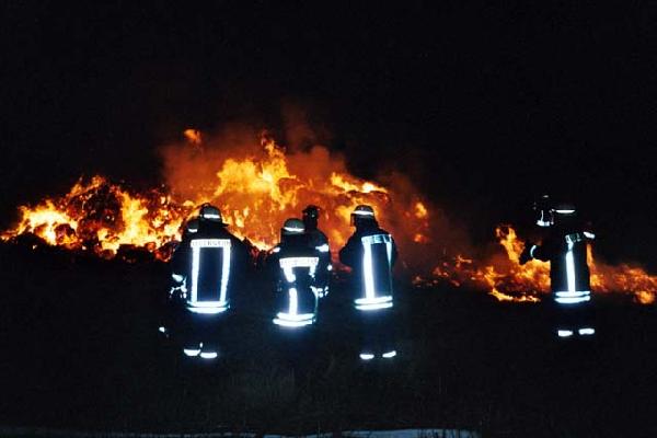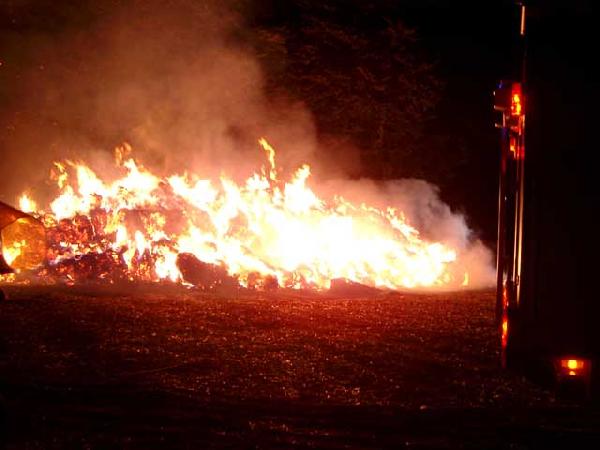 Ein kontrolliertes Abbrennenlassen des Strohlagers war durch die Lage direkt am Waldrand nicht möglich. Daher wurden die Flammen zuerst niedergeschlagen und das Stroh dann mit Traktoren auseinandergezogen und die Flammen abgelöscht.