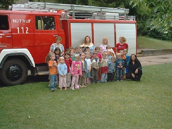 Die Kinder und die Erzieherinnen bedankten sich bei den beiden Feuerwehrkameraden, bevor sie den Weg in das Gerätehaus zurück antraten. Sicherlich werden sich die Kinder noch lange an den Besuch der Feuerwehr an diesem Morgen erinnern.