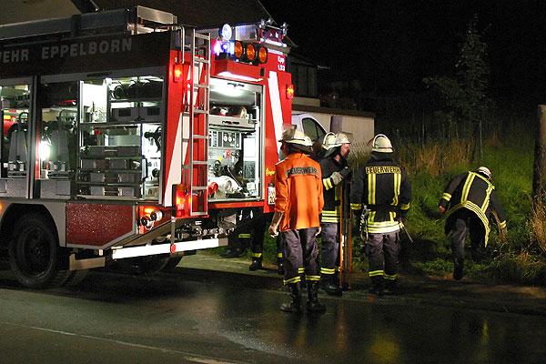 Sofort begannen die Löscharbeiten unter dem Einsatz von zwei Rohren, so dass die Flammen bereits nach wenigen Minuten unter Kontrolle waren. Ein weiteres Ausbreiten der Flammen konnte durch den schnellen Einsatz verhindert werden. Gut eine Stunde nach der Alarmierung war der Einsatz beendet und die Eppelborner Feuerwehrleute konnten wieder einrücken.