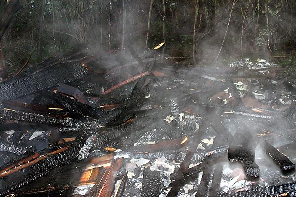 Die Hütte wurde bei dem Brand völlig zersört. Die Polizei vermutet nach ersten Erkenntnissen Brandstiftung als Brandursache.