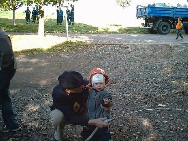 Am Informationsstand konnten sich interessierte Bürger über die Arbeit der Jugendfeuerwehr informieren. Eine Buttonpresse sorgte bei den Kindern für großes Interesse und so kam es, dass doch viele mit lustigen Feuerwehrbuttons herumgelaufen sind. Aber auch der Wasserspaß kam nicht zu kurz und so konnten die Kinder mit einer Kübelspritze auf eine eigens gebaute Wand zielen, um so einen Eimer zu füllen, der dann ab einer gewissen Wassermenge an einem Seil nach unten klappte. Ein Spaß auch für die Kleinsten, da Opa ja die manuelle Pumpe betätigen musste und so ganz schön in´s Schwitzen gekommen ist.