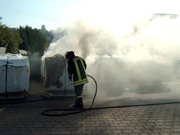 Die Einsatzkräfte fluteten die Container mit Wasser und setzte anschließend Löschschaum ein, um die Flammen zu ersticken. Die beiden Container wurden anschließend mit einem Fahrzeug des Gemeindebauhofes zum Baubetriebshof gebracht, um sie dort zu öffnen und die noch brennenden Reste endgültig abzulöschen.
