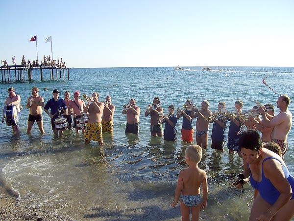 Am Ferienort, gut eine Stunde von Antalya entfernt angekommen, konnte sich von den Strapazen der lange Reise erholt werden. Freizeitmöglichkeiten gab es viele: Schwimmen im Meer, Besuch der türkischen Basare, auf denen nach Herzenslust gehandelt und gefeilscht werden konnte, oder einfach nur relaxen in der Ferienanlage, für jeden war etwas dabei. Zwischendurch sorgten die Musikanten des Löschbezirks Eppelborn immer wieder für Begeisterung bei den Miturlaubern, wenn sie spontan ein Pool- oder Strandkonzert gaben.