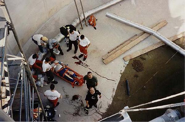 Problematisch gestaltete sich dann die technische Rettung. Der Einsatz einer Drehleiter war aufgrund fehlender Zufahrtsmöglichkeiten nicht möglich. Ein an der Baustelle stehender Turmkran konnte zuerst ebenfalls nicht eingesetzt werden, da der Kranführer bereits auf dem Nachhauseweg war und das Steuergerät mitgenommen hatte.