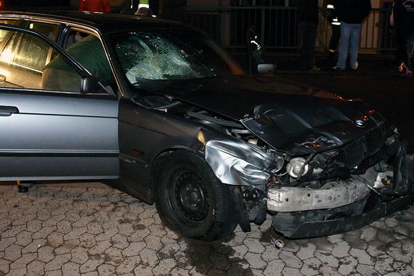 Ein Fußgänger wurde bei der folgenschweren Fahrt von dem Wagen gestreift und erlitt leichte Verletzungen. Erst einige Meter weiter war die Fahrt dann an einem Brückengeländer zu Ende. Mit dem Vorderwagen bereits über der dort fließenden Allwiesbach blieb das Fahrzeug endlich stehen.