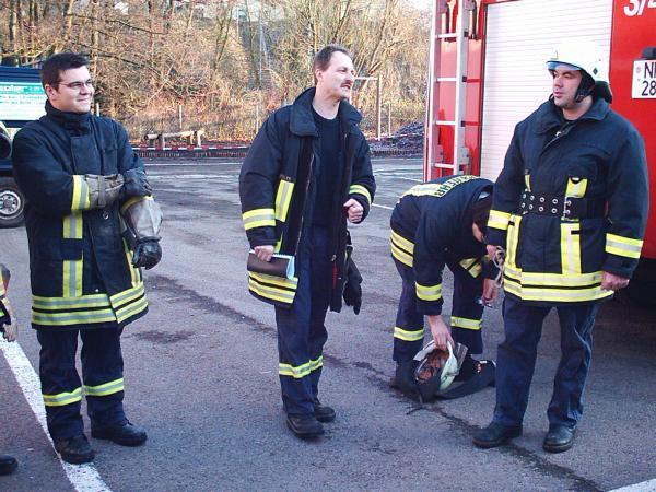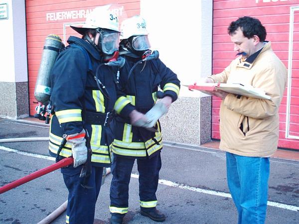 Die Atemschutzüberwachung funktionierte recht gut und die Trupps erledigten die Ihnen auferlegten Arbeiten mit Erfolg. Die Vorgabe, innerhalb von 90 Sekunden komplett ausgerüstet zu sein ist schwierig zu erfüllen. Hier zeigt sich der Vorteil, dass der Angriffstrupp sich bereits auf der Fahrt zum Einsatzort komplett ausrüsten kann.