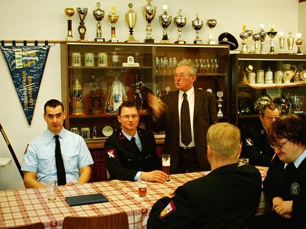 Ortsvorsteher Rudi Hell dankte den Feuerwehrleuten des LB Dirmingen im Namen der Bürger für die geleistete Arbeit im Jahr 2005. Ein besonderer Dank für die Präsentation von Dirmingen im Internet erging an den Feuerwehrmann Oberlöschmeister Hans-Werner Guthörl, der in eigener Arbeit eine Internetseite über den Ortsteil Dirmingen betreibt.