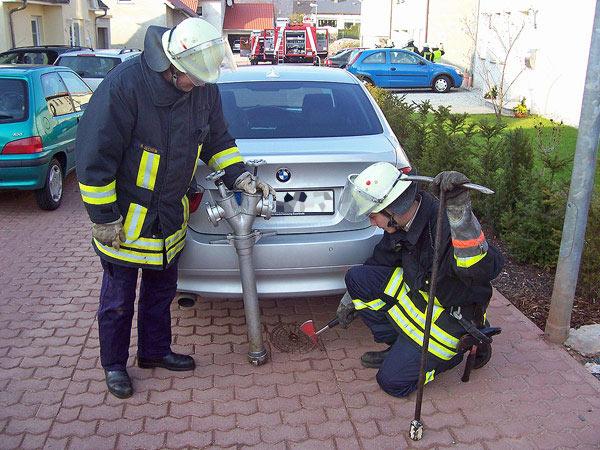 Zur Brandbekämpfung braucht die Feuerwehr Löschwasser, das aus Hydranten in der Straße entnommen wird. Oft stellen Autofahrer unbewusst ihr Fahrzeug darauf ab. Auch ein kurzfristiges Abstellen ("Ich bin nur 2 Minuten weg gewesen!") behindert einen Feuerwehreinsatz bei einer Menschenrettung enorm.