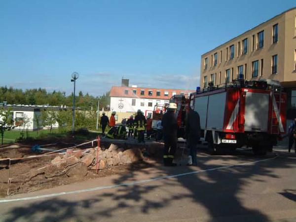 Gegen 16 Uhr wurden nacheinander alle Löschbezirke der Gemeinde zu einem angenommenen Großbrand auf dem Gelände des Psychiatrischen Pflegeheimes alarmiert.