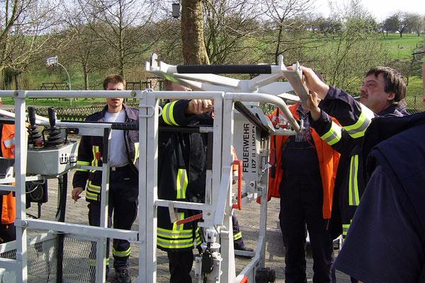Ziel der Übung war es, die Besonderheiten der Drehleiter im Einsatz sowie ihre Möglichkeiten kennenzulernen. Denn schon beim Aufstellen der Fahrzeuge ist das von Bedeutung: Durch die notwendige Abstützung und den Leiterpark braucht dieses Rettungsgeräte ausreichend Platz an einer Einsatzstelle. Trotzdem muss immer ausreichend Platz für weitere an- und abrückende Einsatzfahrzeuge bleiben.