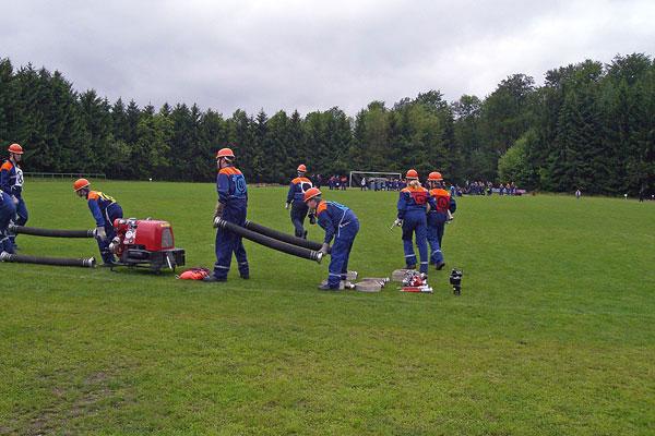 Rund 250 Jugendfeuerwehrleute waren ins Kohlwaldstadion gekommen. Für diejenigen, die nicht an der Leistungsspangenprüfung teilnahmen, hatten die Verantwortlichen Wettkämpfe vorbereitet. Spiele wie Leinenweitwurf, Tauziehen oder Rasenski sorgten dafür, dass bei den Jugendlichen keine Langeweile aufkam.