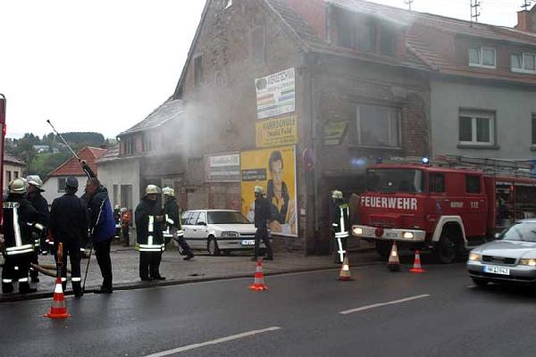 Zum Glück war es nur eine Übung, aber eine unter besonders realistischen Bedingungen. Ein leerstehendes Wohn- und Geschäftshaus wurde dazu mit Rauchpulver verqualmt und Übungspuppen im Gebäude abgelegt.