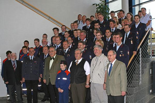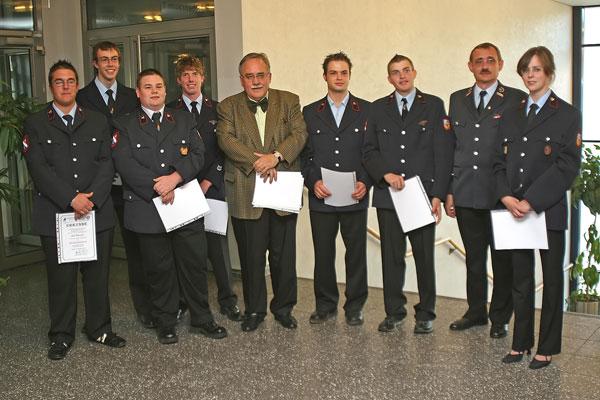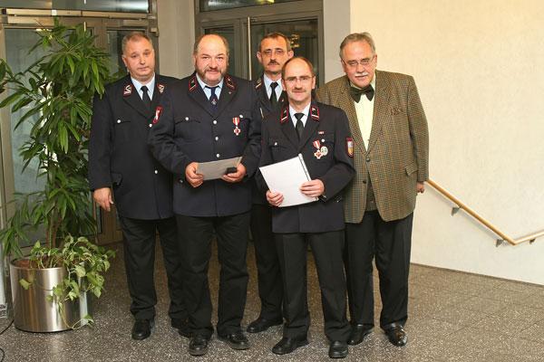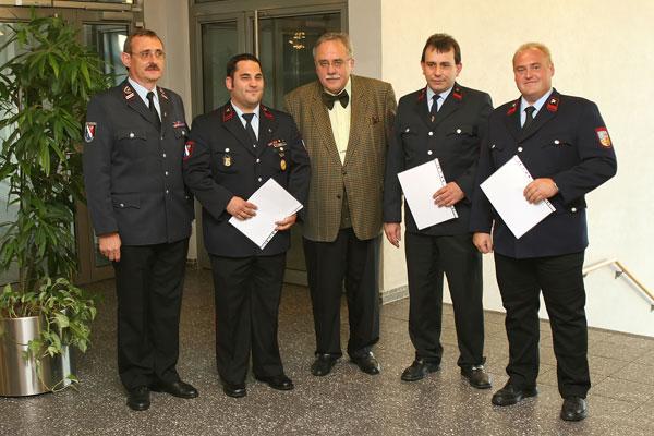Neben zahlreichen weiteren Beförderungen wurden Michael Schäfer, Torsten Zawar (beide aus dem Löschbezirk Bubach-Calmesweiler), Markus Klausmann (Eppelborn), Patrick Behr (Humes), Tino Kienel (Hierscheid) und Thorsten Schäfer (Habach) für 20-jährige Mitgliedschaft geehrt. Für die doppelte Zeit, nämlich 40 Jahre aktiver Mitgliedschaft konnten Hans-Jürgen Schuhmacher aus Eppelborn und Willi Brill aus Macherbach ausgezeichnet werden.