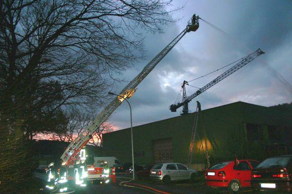 Der Angriffstrupp auf dem Dach, der unter schwerem Atemschutz vorging, hatte das Feuer schnell unter Kontrolle und die Personen beruhigt und erstversorgt. Kurz darauf trifft die Drehleiter an der Einsatzstelle ein und die erste Person wird nach unten gebracht. Schnell ist auch die zweite Person vom Dach gerettet. Danach unterstützte die Drehleiter mit dem Wenderohr noch die Brandbekämpfung.