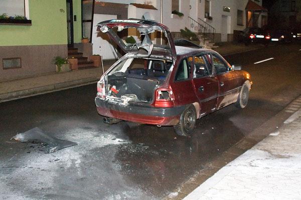 Aufgeschreckt durch den im ganzen Ort zu hörenden Knall wurden Anwohner auf den Vorfall aufmerksam und alarmierten sofort die Feuerwehr. Der Bäckermeister einer angrenzenden Bäckerei, selbst Feuerwehrmann in Eppelborn, griff sofort zusammen mit seinen Gesellen zu Feuerlöschern und konnte das brennende Fahrzeug schnell löschen.