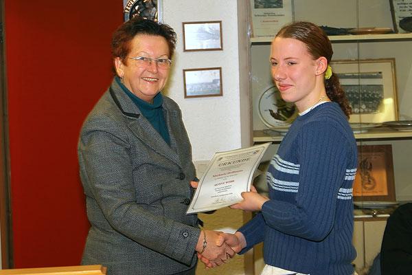 Die stellvertretende Ortsvorsteherin Elfriede Groß bedankte sich im Namen der Gemeinde für die im vergangenen Jahr geleistete Arbeit und versprach die weitere Unterstützung des Ortsrates bei allen Probleme und Sorgen der Feuerwehr. Sie konnte dann in Vertretung für Bürgermeister Fritz-Hermann Lutz die Jugendfeuerwehrangehörige Michaela Hoffmann in die aktive Einsatzabteilung der Feuerwehr aufnehmen.