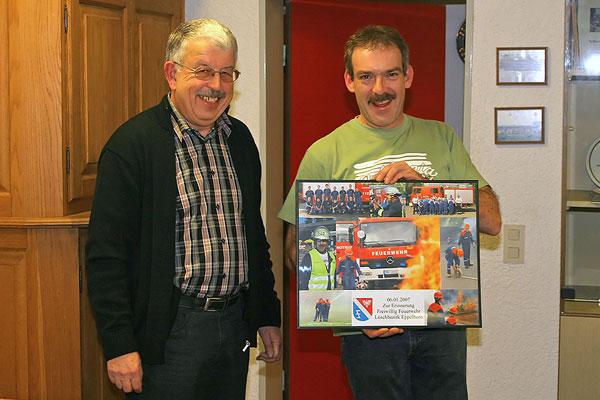 Eine personelle Änderung gab es bei der Jugendfeuerwehr: Der bisherige Jugendbetreuer Werner Ruschel schied auf eigenen Wunsch nach 12 Jahren Jugendarbeit aus dem Amt des Jugendbetreuers aus. Seine Nachfolge tritt sein Stellvertreter Markus Leidinger an. Löschbezirksführer Becker dankte dem Jugendwart für seine Arbeit und überreichte im Namen der Mannschaft ein Abschiedsgeschenk.