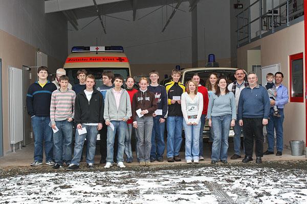 Wehrführer Hermann Josef Recktenwald war extra zum Abschluss des 8 Doppelstunden umfassenden Erste-Hilfe-Kurses ins DRK-Heim in Eppelborn gekommen, um den Teilnehmern persönlich zum erfolgreichen Lehrgangsabschluss zu gratulieren. "Es ist der erste Lehrgang in Eurer Feuerwehrlaufbahn und von ganz besonderer Bedeutung für Eure Feuerwehrarbeit", so der Wehrführer zu den Jugendlichen.