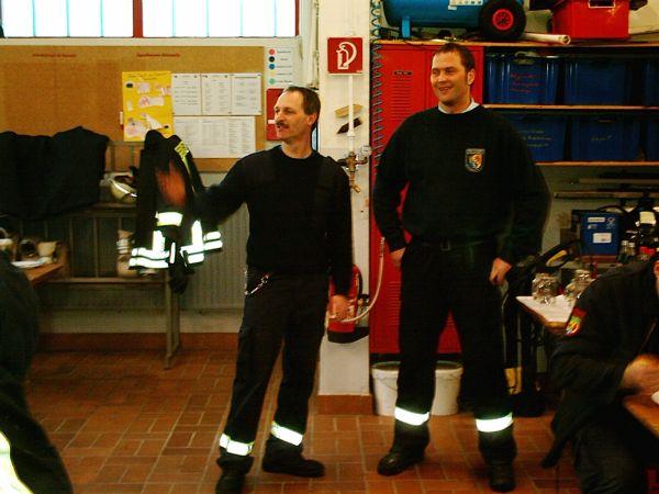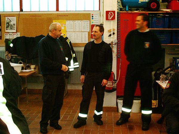 Die Zusammenarbeit zwischen den beiden Löschbezirken funktionierte problemlos und das Übungsziel an diesem Samstagnachmittag wurde schnell erreicht. Nach der erfolgreichen Übung wurde im Gerätehaus in Berschweiler ein kleiner Imbiss gereicht und die Löschbezirksführer Bernd Detzler, Dirmingen und Marco Jochem, Berschweiler fanden Worte des Lobes. German Eckert, Wehrführer der Gemeinde Marpingen, folgte der Einladung, die an die Wehrführung der beiden Gemeinden erging und verfolgte die Übung mit großem Interesse. In seiner anschließenden Laudatio würdigte er die Leistung der beiden Löschbezirke und befand es als sehr gut, dass die Kommunikation und die Zusammenarbeit hervorragend funktioniert.