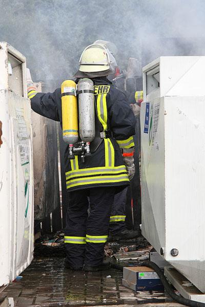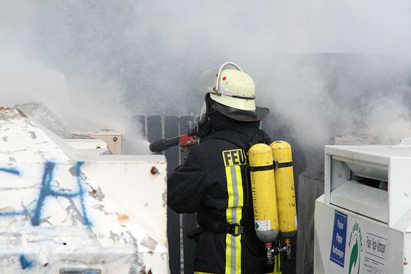 Die gegen 18:30 Uhr alarmierten Einsatzkräfte aus dem Löschbezirk Eppelborn waren nach der Alarmierung schnell mit zwei Einsatzfahrzeugen vor Ort. Mit der Schnellangriffseinrichtung des Tanklöschfahrzeugs konnten die brennenden Container gelöscht werden. Ein weiteres Übergreifen des Feuers auf einen Holzzaun konnte verhindert werden. Wegen der starken Rauchentwicklung mussten sich die Feuerwehrleute mit Atemschutzgeräten ausrüsten.