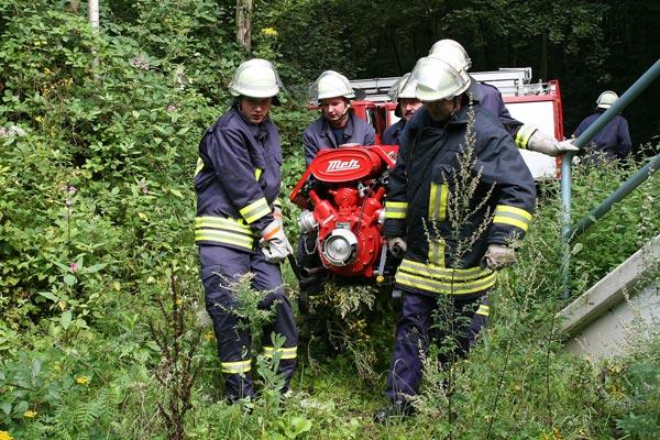 Ziel der jährlichen Waldbrandübungen ist in erster Linie die Wasserversorgung an den abgelegenen Einsatzstellen. Denn während sich in der Ortslage immer ein Hydrant in der Nähe findet, müssen in den Waldgebieten viele hundert Meter Schlauchleitungen verlegt oder sogar ein Pendelverkehr mit Tanklöschfahrzeugen eingerichtet werden. Besonders für die Maschinisten, die die Pumpen bedienen, ist das Aufrechterhalten des notwendigen Wasserdrucks mit mehreren Verstärkerpumpen eine schwierige Aufgabe, die in diesen Übungen trainiert werden kann.