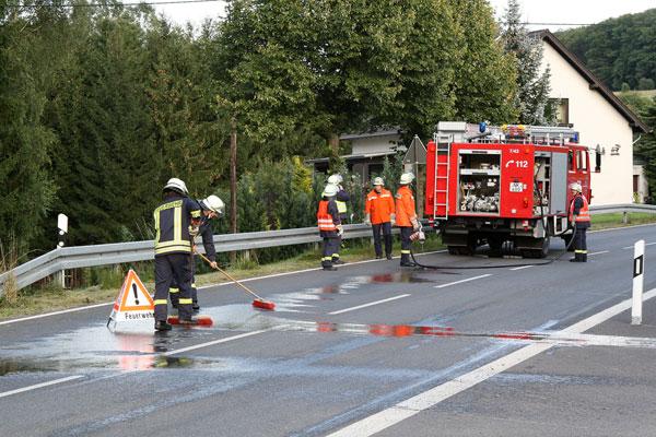 Mit Ölbindemittel wurde die Straße gereinigt und die Gefahr für die Verkehrsteilnehmer beseitigt. Der Einsatz war gegen 19:30 Uhr beendet. Der Verursacher konnte von der Polizei ermittelt werden
