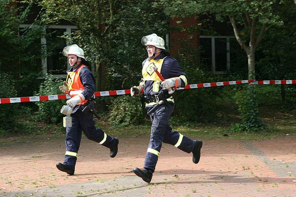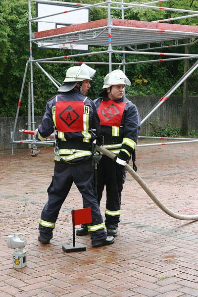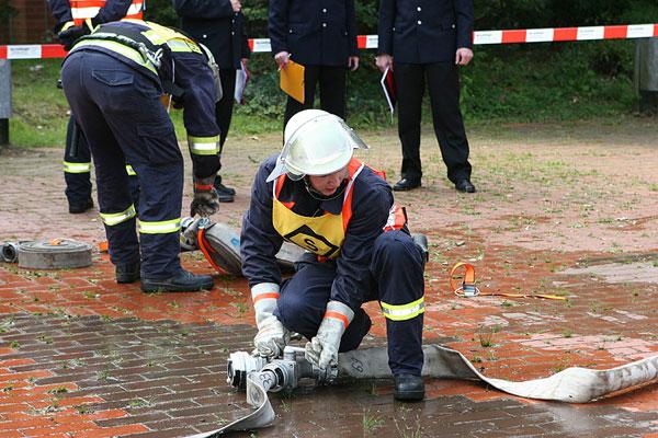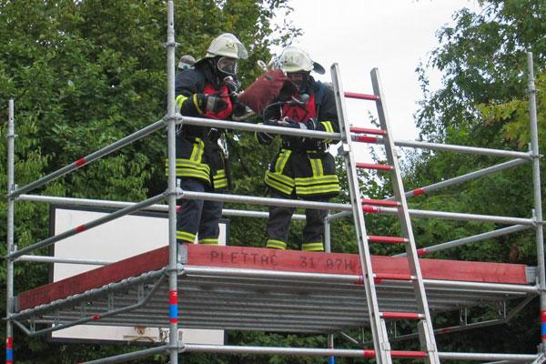 Die Aufgaben: In einer bestimmten Zeit musste ein Löschangriff von der Wasserentnahme bis zu den Strahlrohren aufgebaut werden. Bei der Stufe II musste dies zusätzlich unter Atemschutzeinsatz geleistet werden. In einer theoretischen Prüfung wurde das feuerwehrtechnische Wissen abgefragt, und zum Abschluss mussten die Teilnehmer beweisen, dass sie die für den Feuerwehrdienst wichtigen Knoten beherrschen.