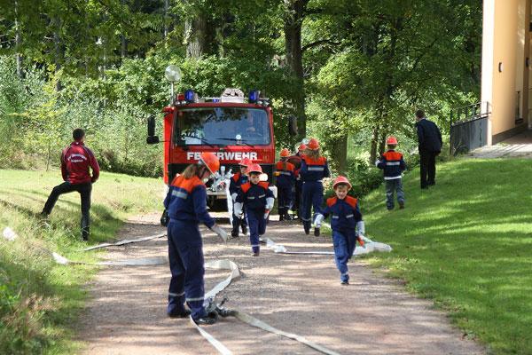 Die Abschlussübung ist der Höhepunkt der Jugendfeuerwehrausbildung in jedem Jahr. Hier kann der Feuerwehrnachwuchs das Wissen präsentieren, welches in Übungen und Ausbildung durch ihre Jugendbetreuer vermittelt wurde. Und auch die Zusammenarbeit der Löschbezirke untereinander wird durch solche gemeinsamen Übungen schon von Anfang an gefördert.