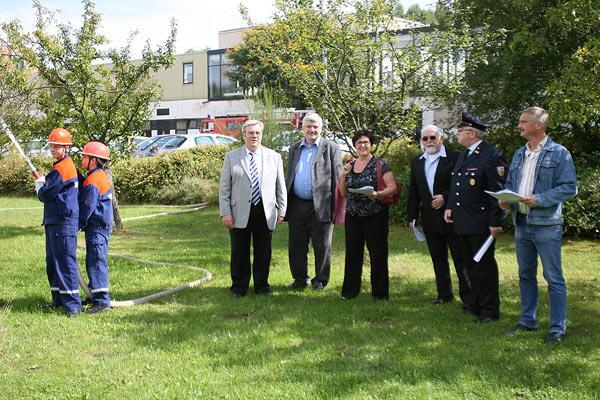 Die Ortsvorsteher der Gemeinde, Wehrführer Hermann Josef Recktenwald, Brandinspekteur Werner Thom und Staatssekretärin Gabi Schäfer waren nach Habach gekommen, um den Jungen und Mädchen bei ihrer Übung über die Schulter zu schauen und sich vom Leistungsstand der Jugendfeuerwehr zu überzeugen.