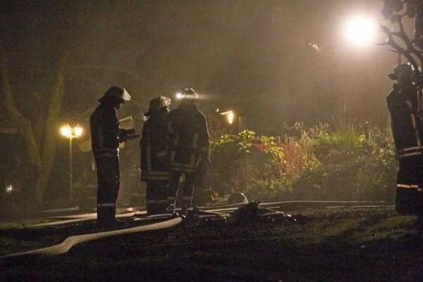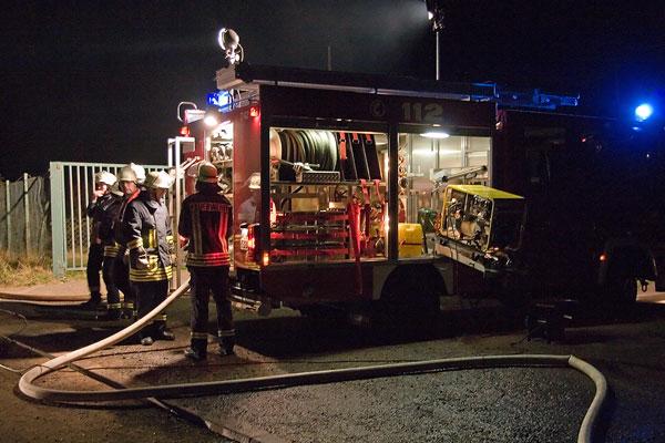 Obwohl das Grundstück direkt am Wasserhochbehälter liegt, stellte die Löschwasserversorgung ein Problem dar: über mehrere hundert Meter musste das Löschwasser zur Einsatzstelle gefördert werden. Probleme mit dem Funk führten anfänglich zu Schwierigkeiten, was aber schnell gelöst werden konnte.