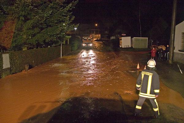 Eppelborn. Schon den ganzen Tag wüteten Sturmböen und starke Regenfälle über dem Saarland. Während im übrigen Saarland immer mehr Feuerwehren zum Einsatz gerufen wurden, blieb es in der Gemeinde Eppelborn zunächst ruhig. Doch als in den Abendstunden des 02. Dezember 2007 die Regenfälle zunahmen, waren auch hier die Kanaleinläufe überfordert.