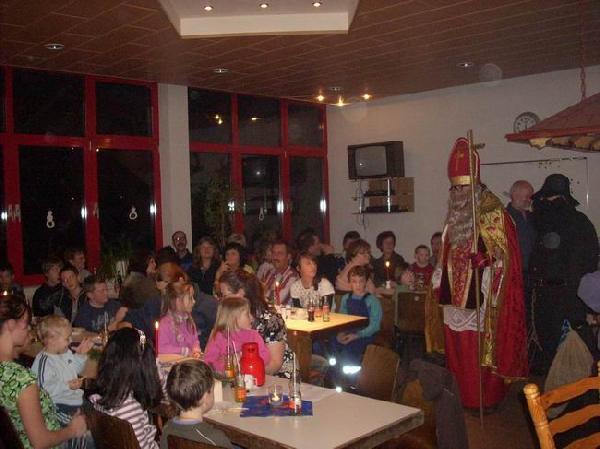 Nach dem Vortragen von weihnachtlichen Gedichten und dem Singen von Weihnachtsliedern fand dann auch der Nikolaus in Begleitung des Knecht Ruprecht den Weg zur Feuerwehr. Dieser hatte natürlich wieder allerhand Geschenke für die Kinder, Frauen und Alterswehrkameraden dabei. Die Kameradinnen und Kameraden der Jugendwehr erhielten vom Nikolaus Gutscheine fürs Erlebnisbad.