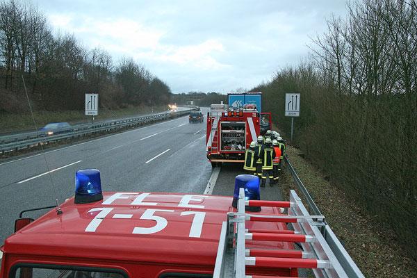Eppelborn. Aufmerksame Autofahrer bemerkten am 16. Januar 2008 die starke Rauchentwicklung an einem Lastzug, der die Autobahn A1 in Richtung Trier befuhr. Sie alarmierten sofort über Handy Polizei und Feuerwehr. Nachdem auch der Fahrer auf den Rauch aufmerksam wurde, hielt er sein Fahrzeug auf dem Standstreifen zwischen den Anschlussstellen Eppelborn und Tholey an.